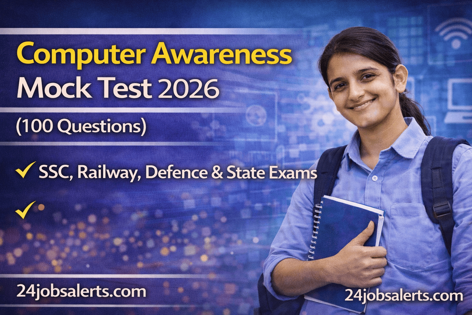 Computer Awareness Mock Test 2026: Computer Awareness आज के सभी competitive exams जैसे SSC, Railway, Defence, Banking और State Level Exams का एक important section बन चुका है। Computer Awareness Mock Test 2026 specially उन candidates के लिए बनाया गया है जो basic से लेकर advanced level तक computer knowledge strong करना चाहते हैं।